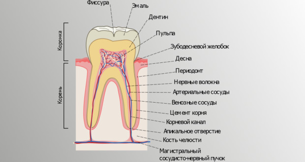 Пульпа – это нервно-сосудистый пучок, центральный для каждого зуба, постоянного или первичного. Он состоит из центральной пульповой камеры, рога пульпы и корешковых каналов. Большая масса пульпы содержится в камере пульпы, содержащейся в коронке зуба и имитирующей общую форму. Из-за постоянного отложения дентина камера пульпы с возрастом становится меньше.