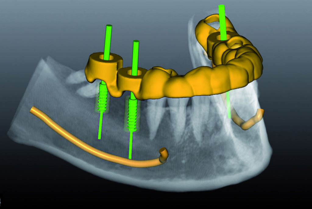 • Один из них – компьютерно-тромографическое планирование, когда изображения рентгеновского компьютерного томографа обрабатываются специализированным программным обеспечением для создания трехмерной модели челюсти и определения точного размещения имплантата.