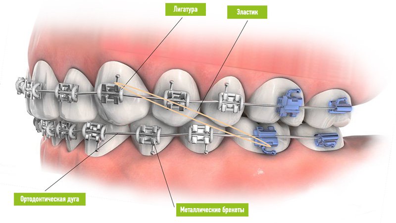 Есть несколько видов лигатур, включая эластичные резинки и металлические ободки.